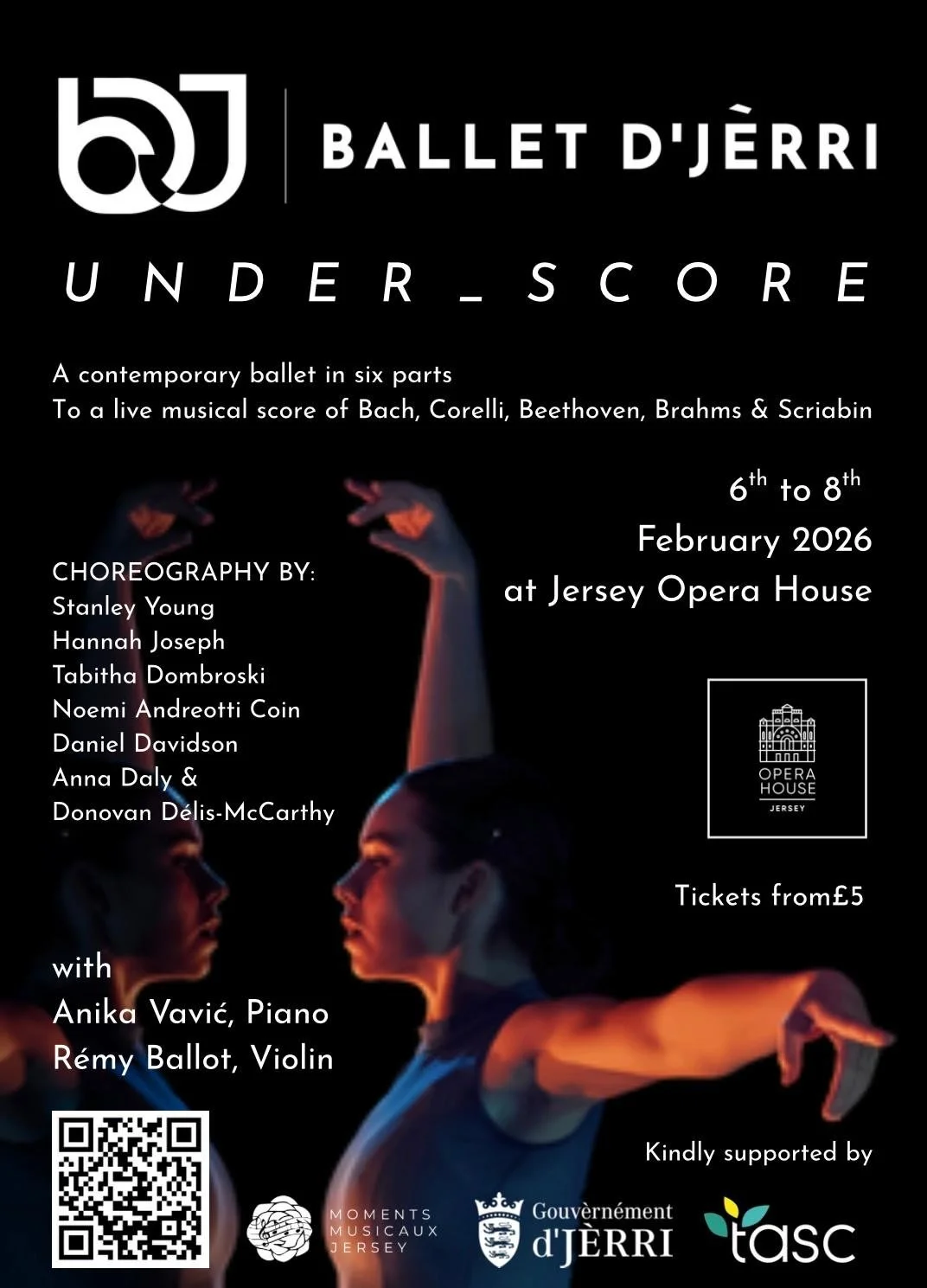 We are excited to support Ballet D’Jerri’s project ‘Under_Score’, a classical concert and showcase of contemporary dance with Anika Vavic, Piano and Remy Ballot, Violin sharing the stage with the Dancers of Jersey’s National Ballet.